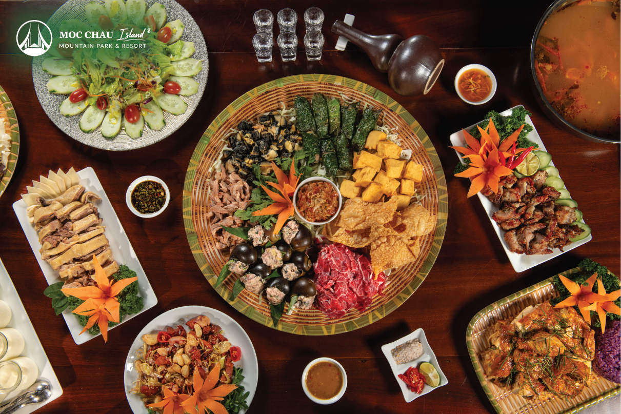 Ẩm thực tại Mộc Châu Island là điểm nhấn đặc biệt trong các chương trình sự kiện. Từ đặc sản Tây Bắc mang đậm bản sắc địa phương đến những bữa tiệc Âu sang trọng được chế biến tinh tế, thực đơn được thiết kế linh hoạt theo nhu cầu từng sự kiện. Mỗi bữa ăn không chỉ là khoảng nghỉ giữa chương trình mà còn là trải nghiệm gắn kết và nâng tầm cảm xúc cho người tham dự.